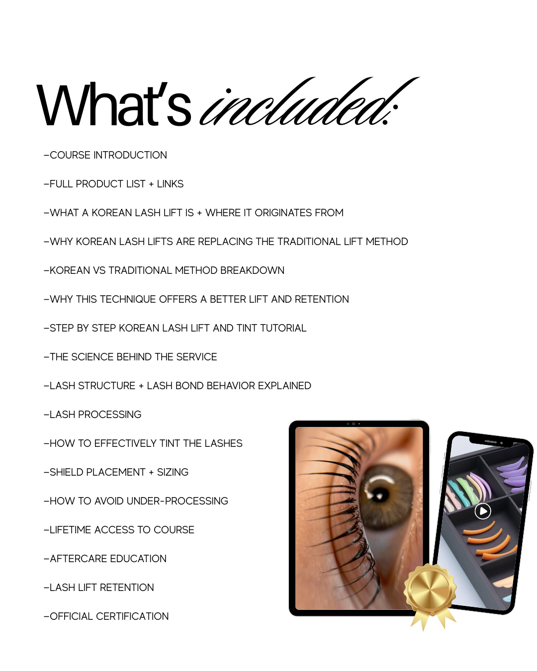 You’ll gain instant access to the full video tutorial and detailed course material, making it easy to follow along and perfect your technique. Ideal for lash artists looking to master a modern, results-driven approach to lash lifting.